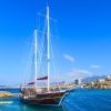One of the most wonderfully relaxing days in North Cyprus can be found by taking a gulet cruise from Kyrenia harbour. There are many pleasure boats of differing sizes touting for business and they are moored throughout the horseshoe shaped curve of the harbour. In high summer when all the gulets will hope to be sailing, they will set off in a leisurely procession round about 10.00. Sun cream, swimming costumes, towels and a camera are essential items to take on board, and maybe a book!
